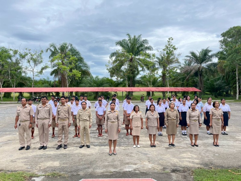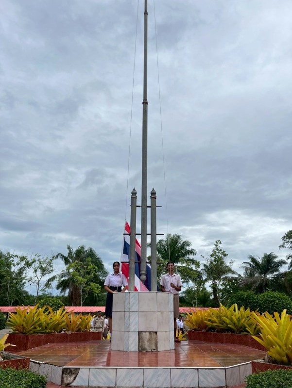 ดร.สุดารัตน์ พรหมแก้ว ผู้อำนวยการโรงเรียนเสาธงวิทยา พร้อมด้วย ข้าราชการครูและนักเรียน เข้าร่วมเคารพธงชาติและร้องเพลงชาติไทย เนื่องในวันพระราชทางธงชาติไทย (Thai National Flag) ประจำปี 2568 ณ บริเวณหน้าเสาธง โรงเรียนเสาธงวิทยา